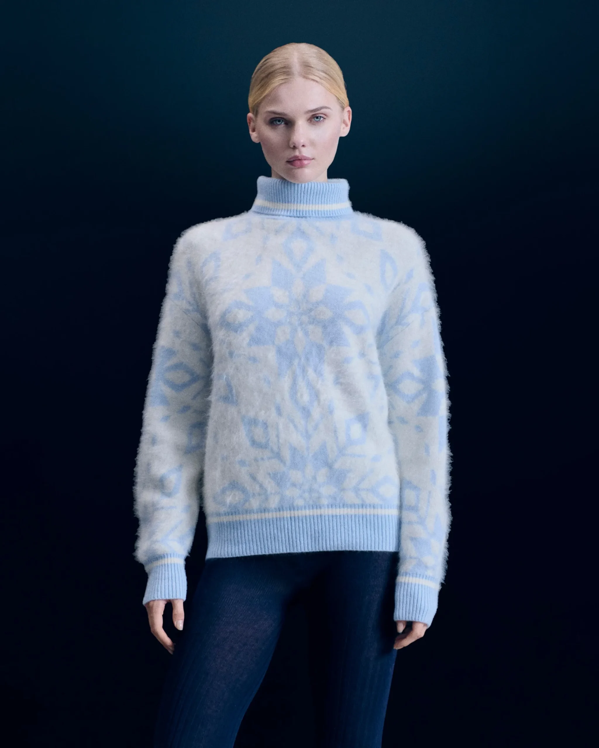 Un tessuto soffice che proietta i tuoi look al top dello stile! Realizzato in cashmere spazzolato, questo maglione oversize è vivacizzato da fiocchi di neve all over e bordini a contrasto. Con un collo a dolcevita e maniche lunghe, puoi abbinarlo a un paio di jeans a gamba larga o a una gonna morbida.