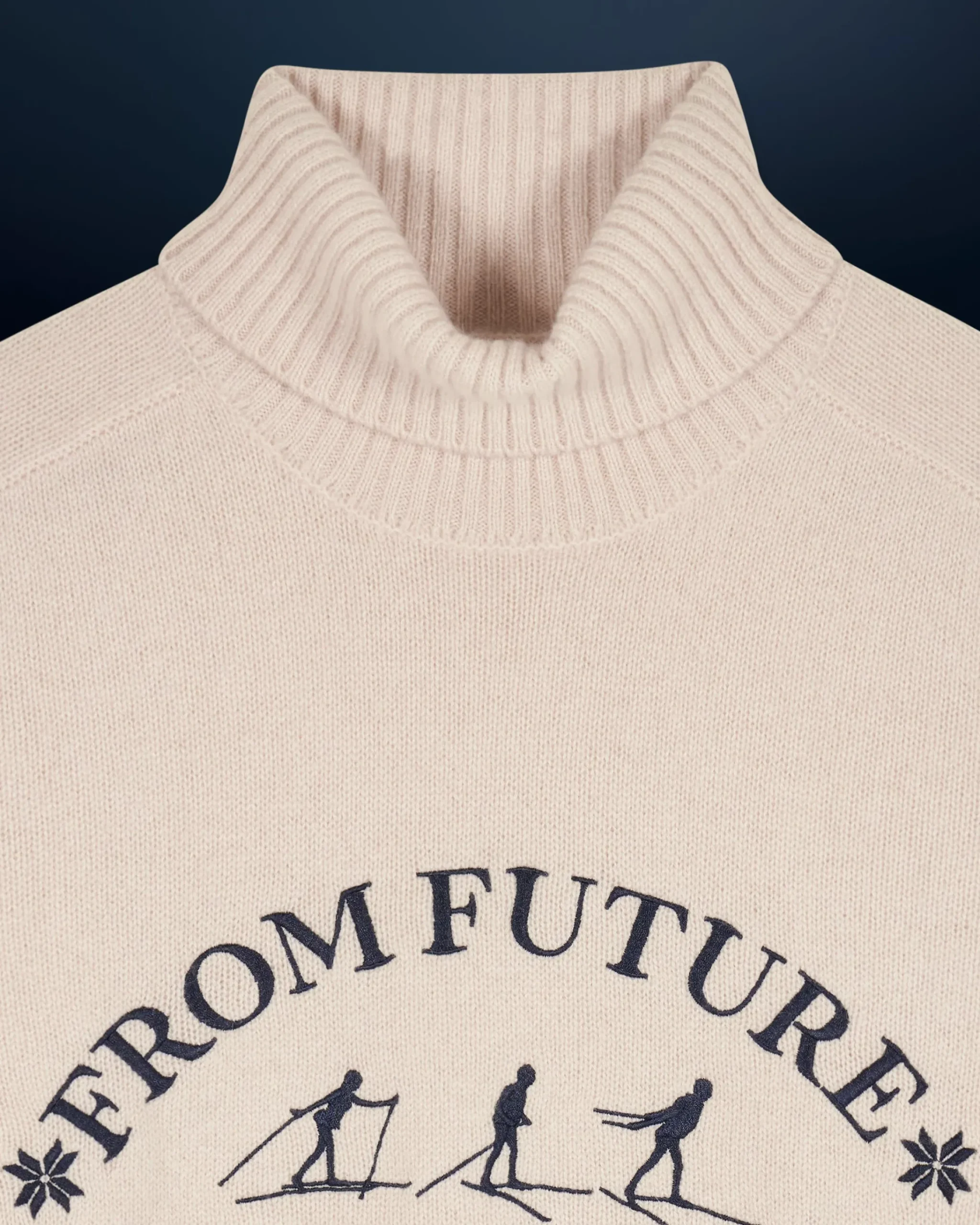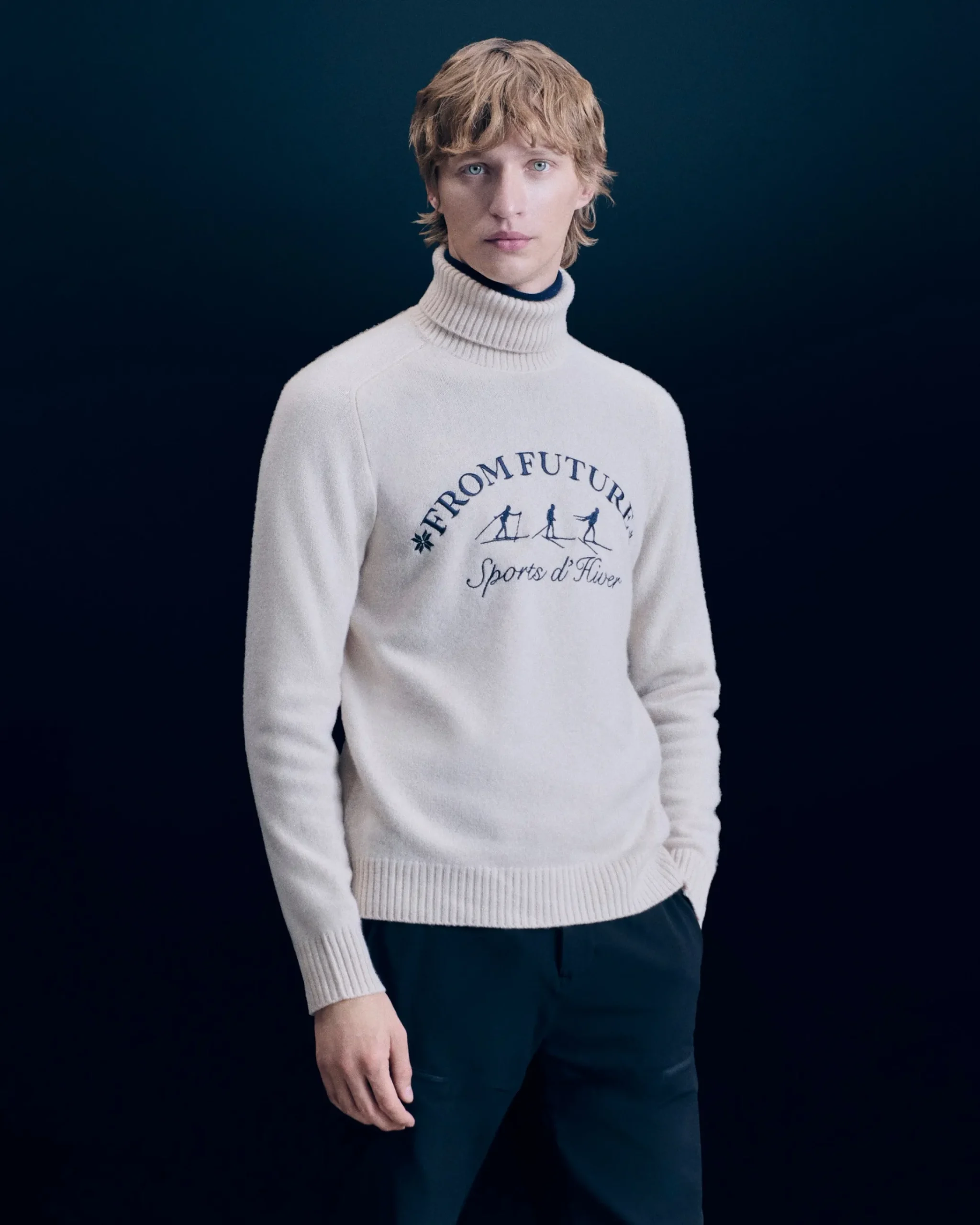 Un vero shuss verso un inverno stiloso con questo maglione in cashmere infinitamente morbido. Dotato di collo alto, maniche lunghe e bordi a coste, rivela un motivo Sci di fondo firmato “From Future Sports d’Hiver” sul davanti. Per la sua eleganza casual, si abbina facilmente a una t-shirt e un paio di pantaloni ampi.
