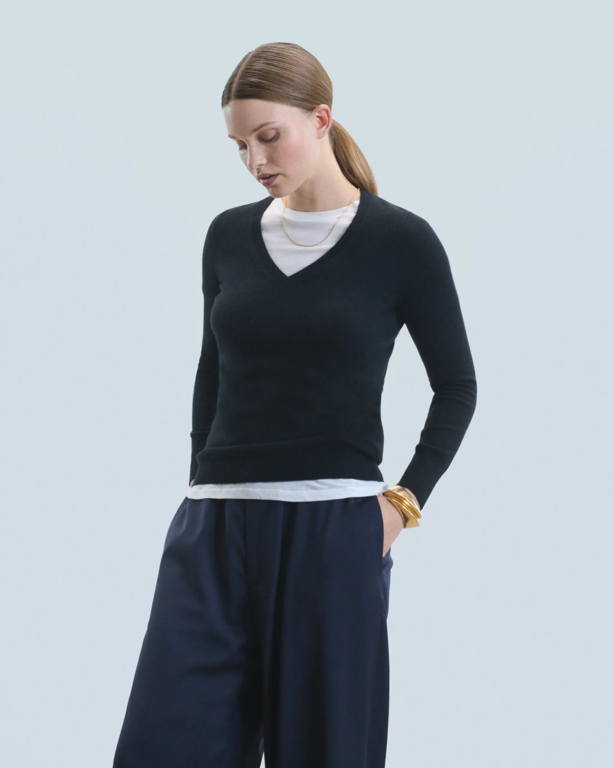 Un pezzo basico da indossare a volontà: questo maglione sfoggia un filato infinitamente morbido confezionato in cashmere. Con uno scollo a V, maniche lunghe e bordi a coste, presenta un taglio slim dalla vestibilità perfetta. Da mixare con tutti gli stili, puoi abbinarlo a un pantalone da tailleur o una gonna strutturata.