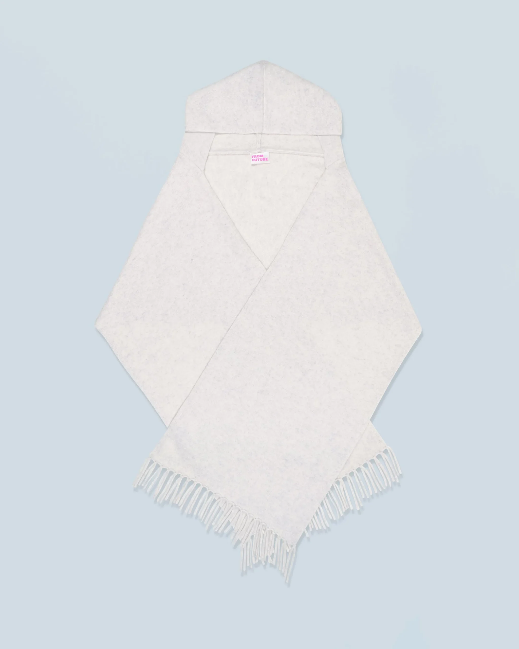 La sciarpa essenziale viene reinventata questa stagione con un tocco di audacia. Realizzato in cashmere, è dotato di cappuccio e bordi sfrangiati per riscaldarti con stile.