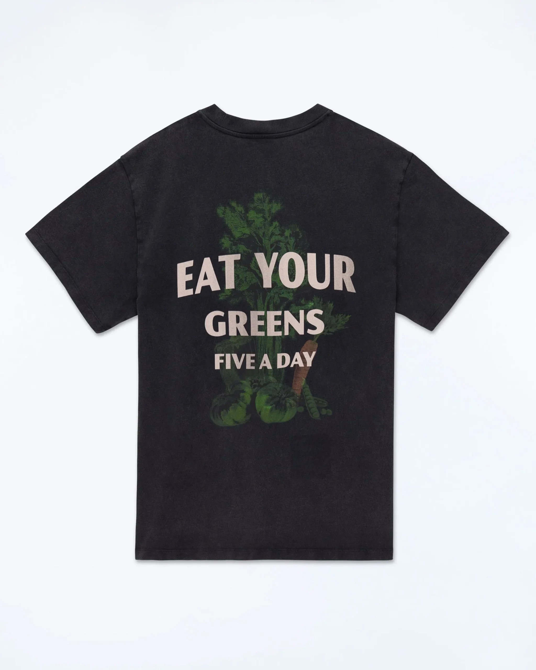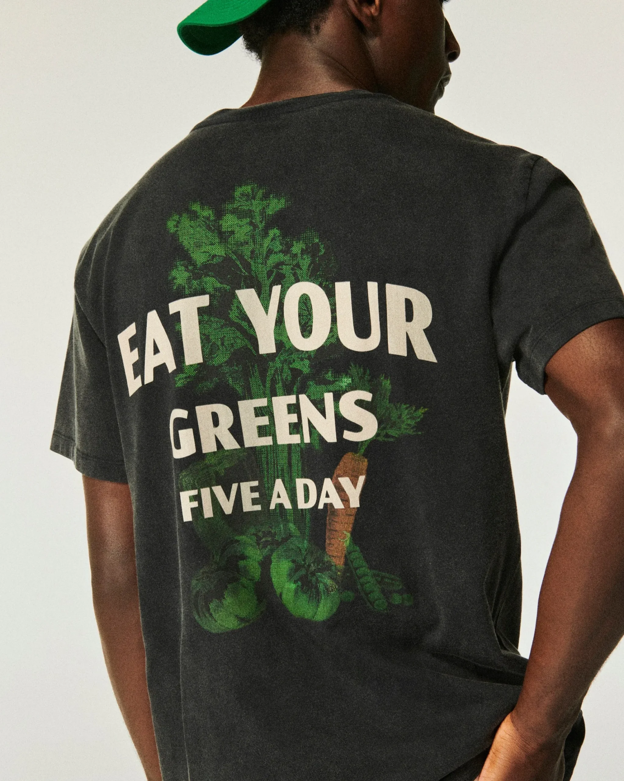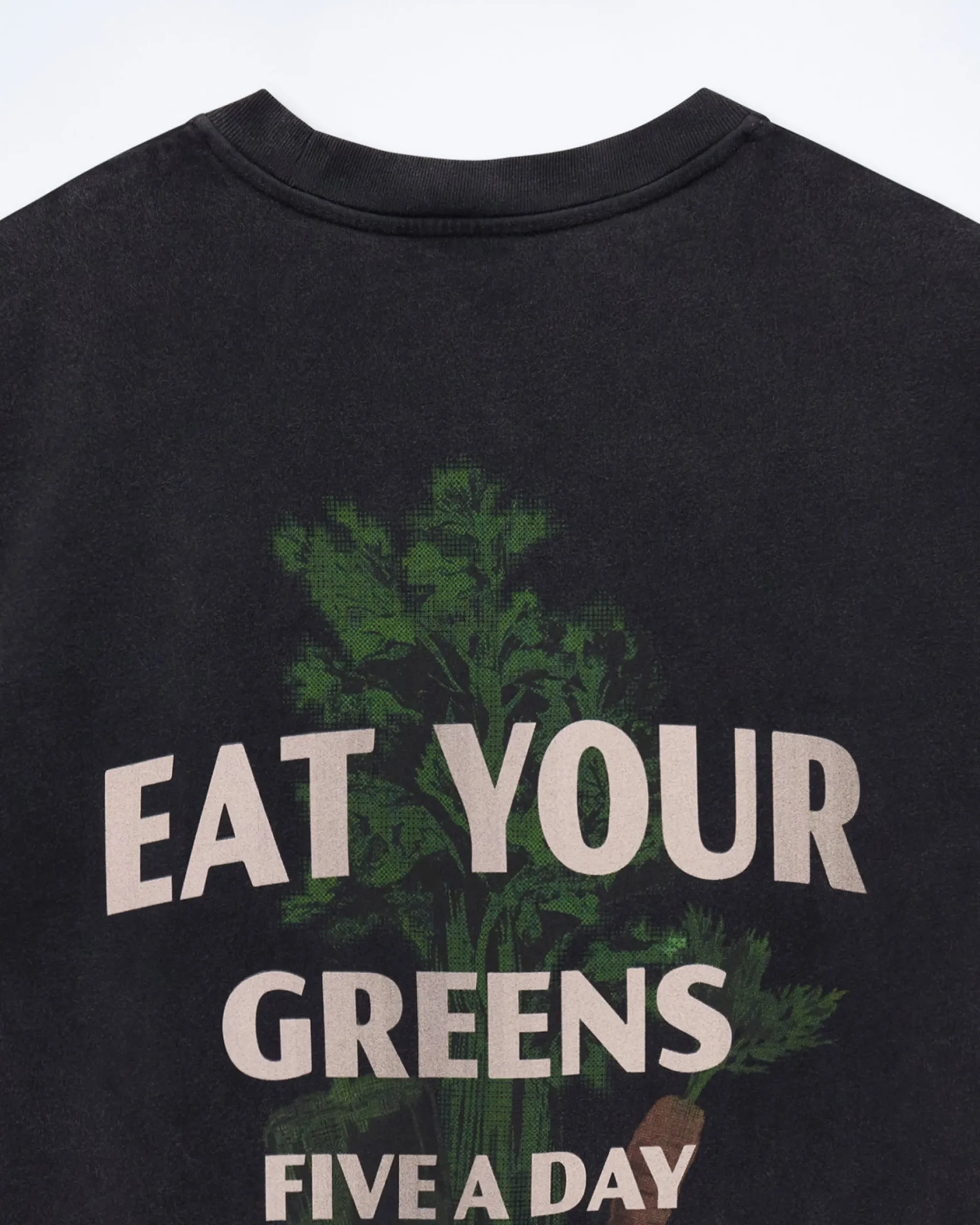 Abbraccia un futuro radioso con questa t-shirt in jersey di cotone pesante! Con uno scollo tondo e maniche corte, sul davanti è vivacizzata dalla stampa Eat Your Greens Five A Day. Indossala con un paio di jeans a gamba larga o joggers dritti per un look elegante e casual!