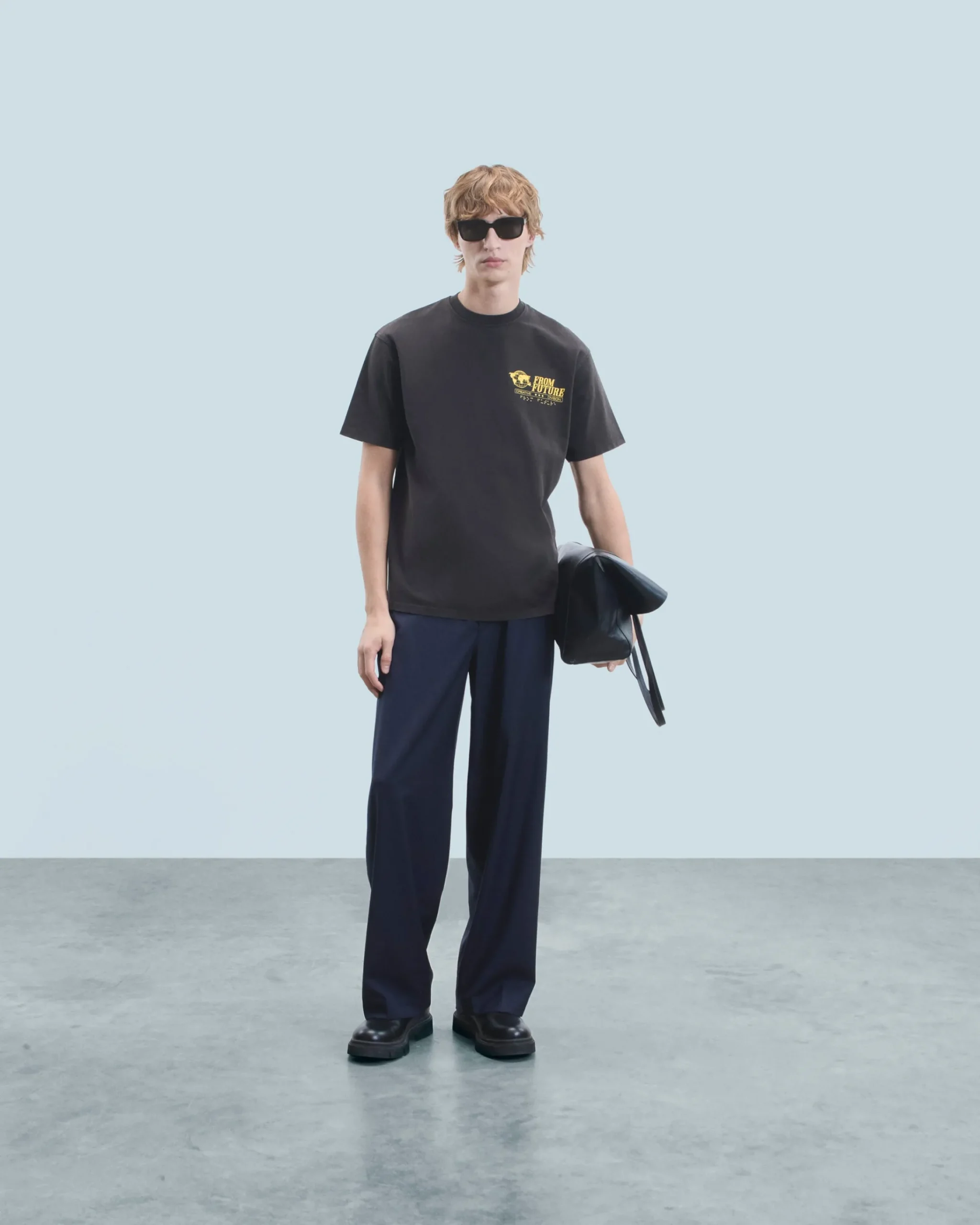 Dai una svolta al tuo look stagionale con questa t-shirt in cotone decorata con grafica UPS sul davanti e sul retro. Con scollo rotondo e maniche corte, è perfetto per un look casual e audace.