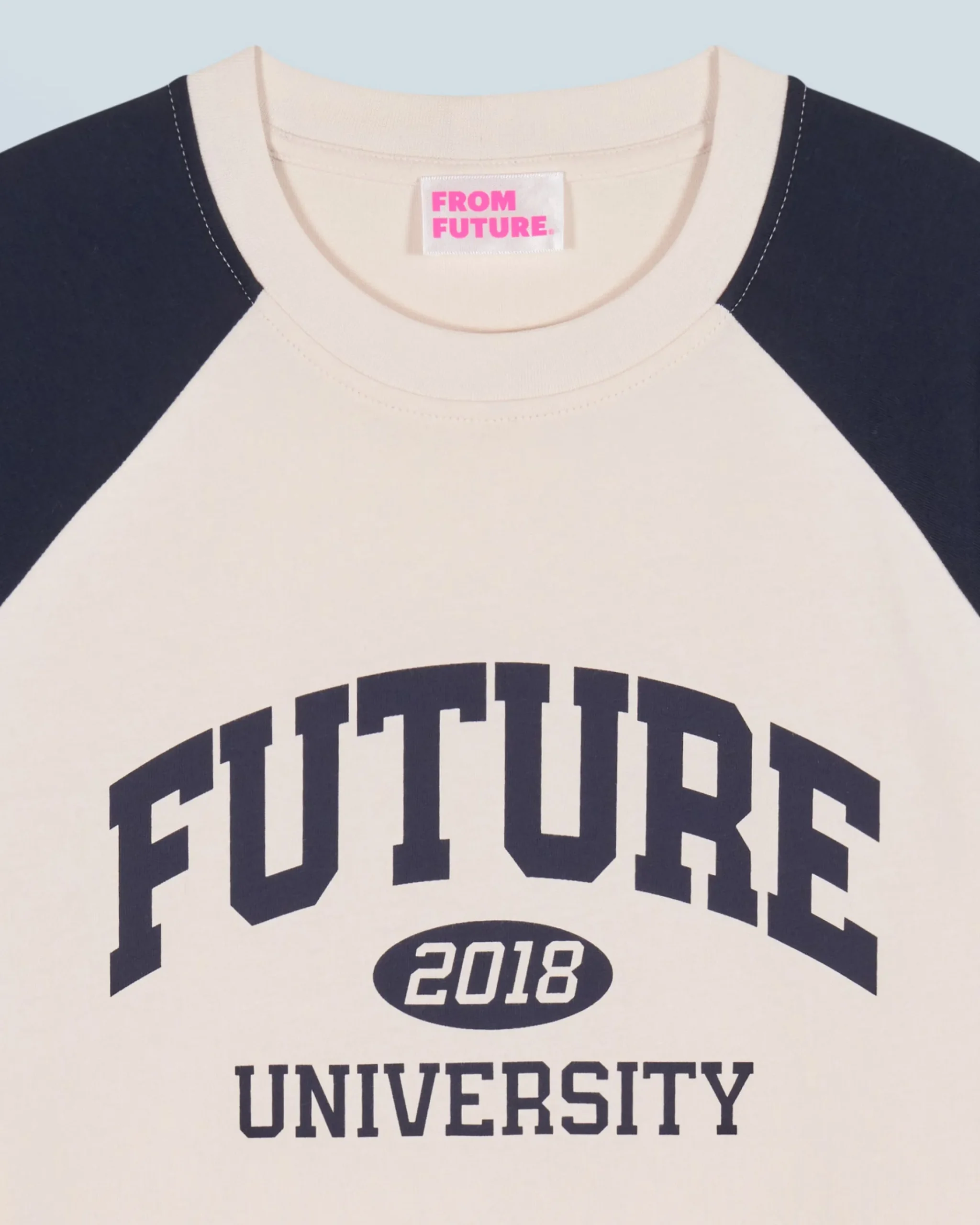 Casual ma comunque elegante, questa t-shirt in cotone presenta la nostra firma “Future University”. Il girocollo e le maniche corte a contrasto reinventano lo stile college con un tocco di audacia.