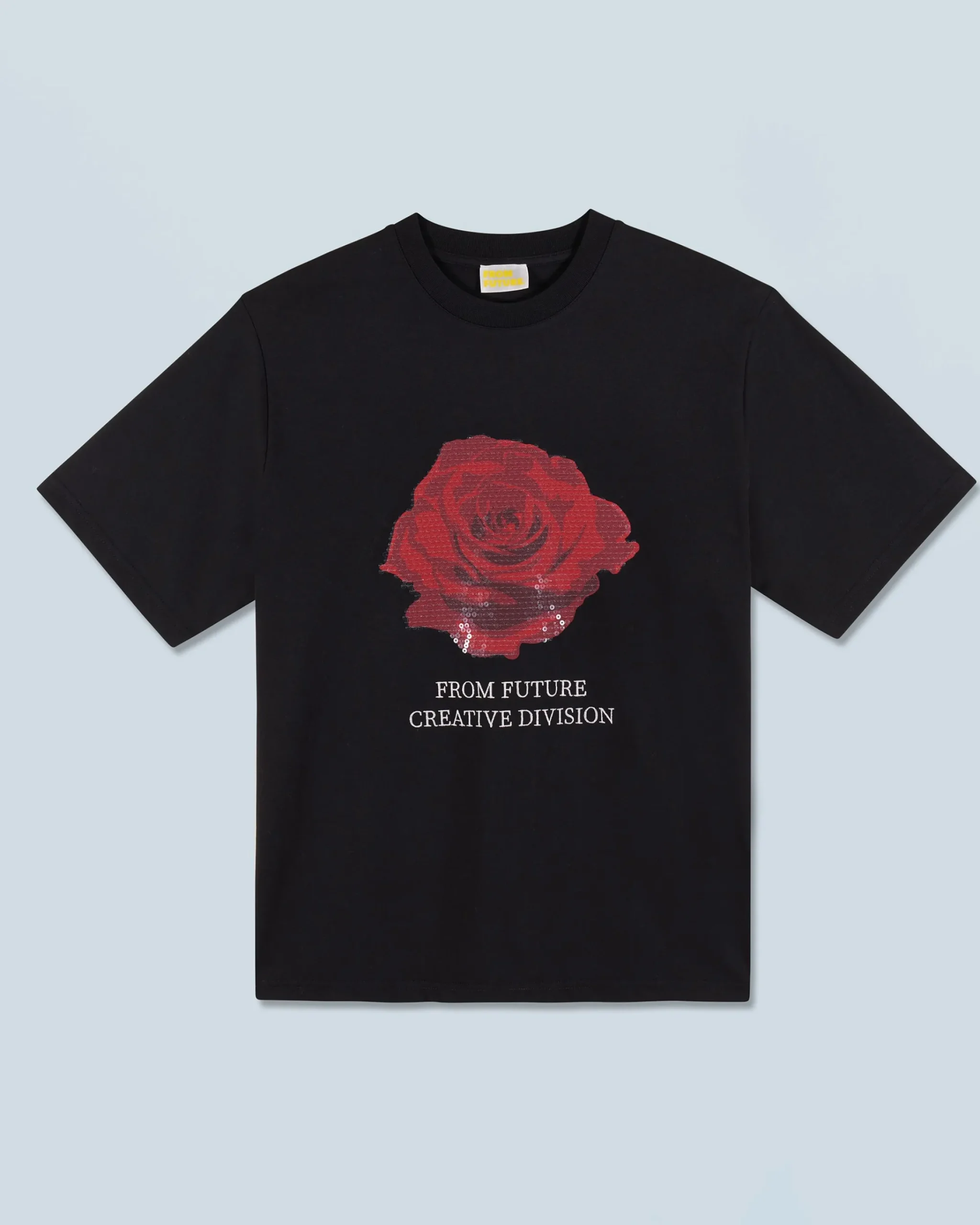 Una vera dichiarazione d’intenti, questa t-shirt in cotone oversize rivela una rosa brillante e scintillante firmata “From Future Creative Division”. Il girocollo a costine e le maniche corte lo rendono un capo versatile, da indossare tutti i giorni con una gonna fluida per un look sofisticato o pantaloni ampi per un look casual.