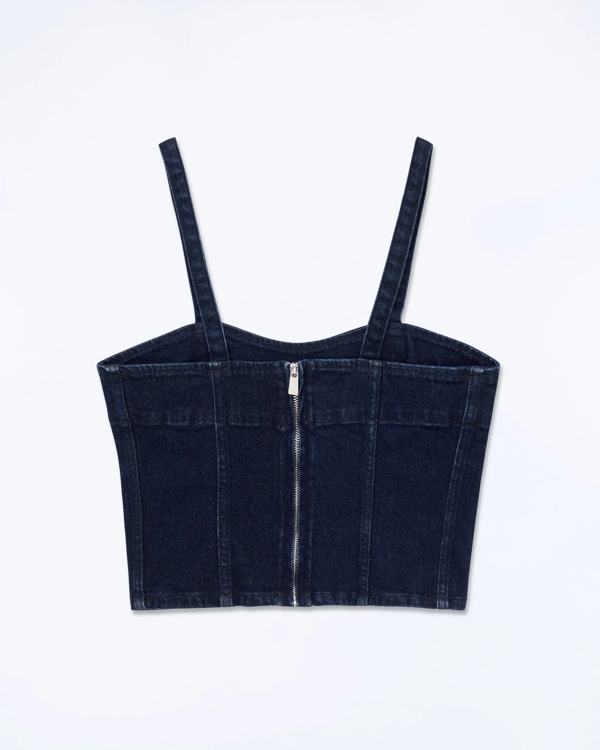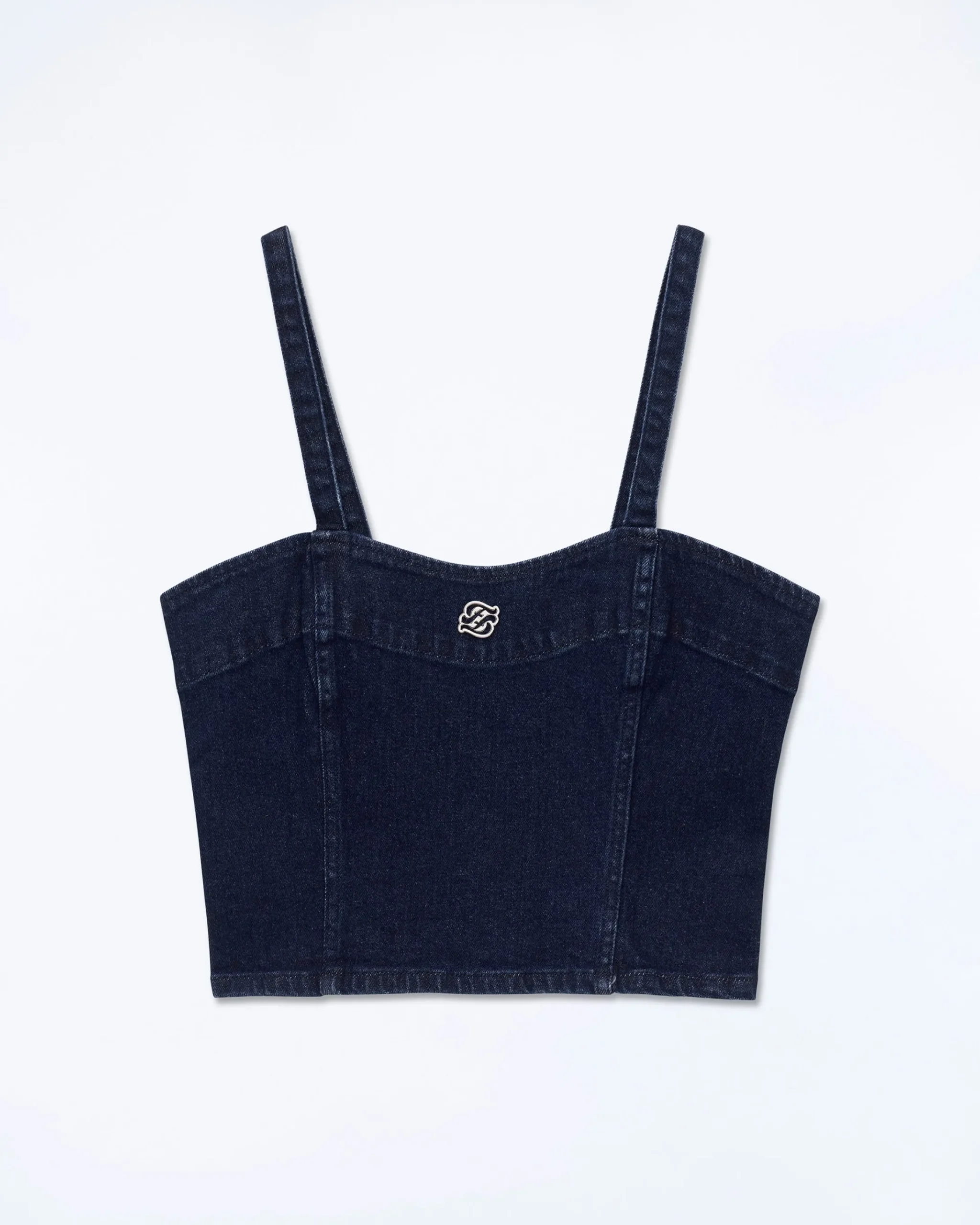 – Top in denim Donna- Dettaglio iconico sul davanti- Spalline sottili- Taglio slim
