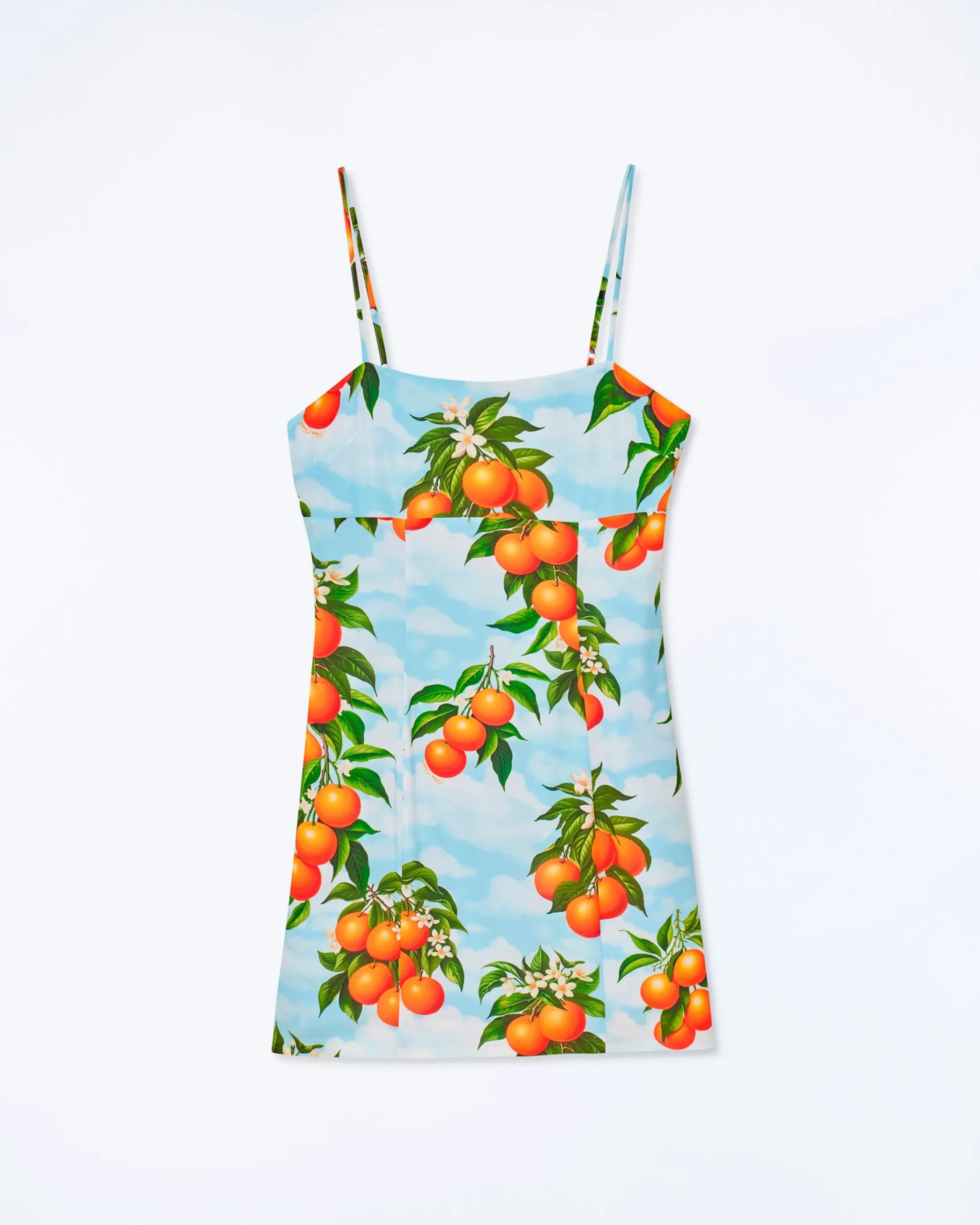 – Vestito corto Donna – Stampa arance – Scollo tondo – Spalline sottili regolabili – Taglio regular