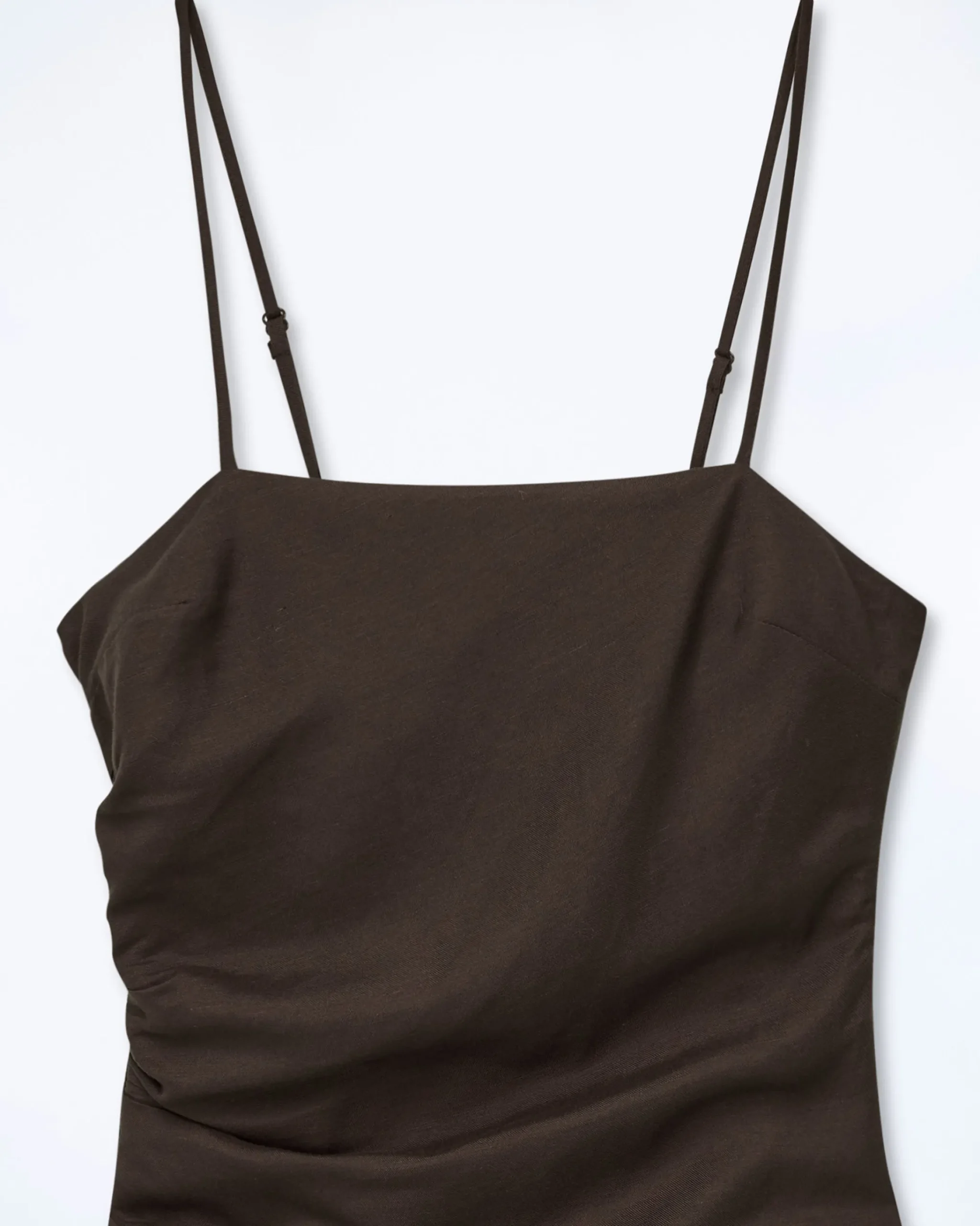 Attraversa il futuro con stile con questo vestito corto vivacizzato da un gioco di increspature! Con spalline sottili regolabili e una chiusura a zip, presenta uno scollo dritto e una gonna a pannelli asimmetrica.