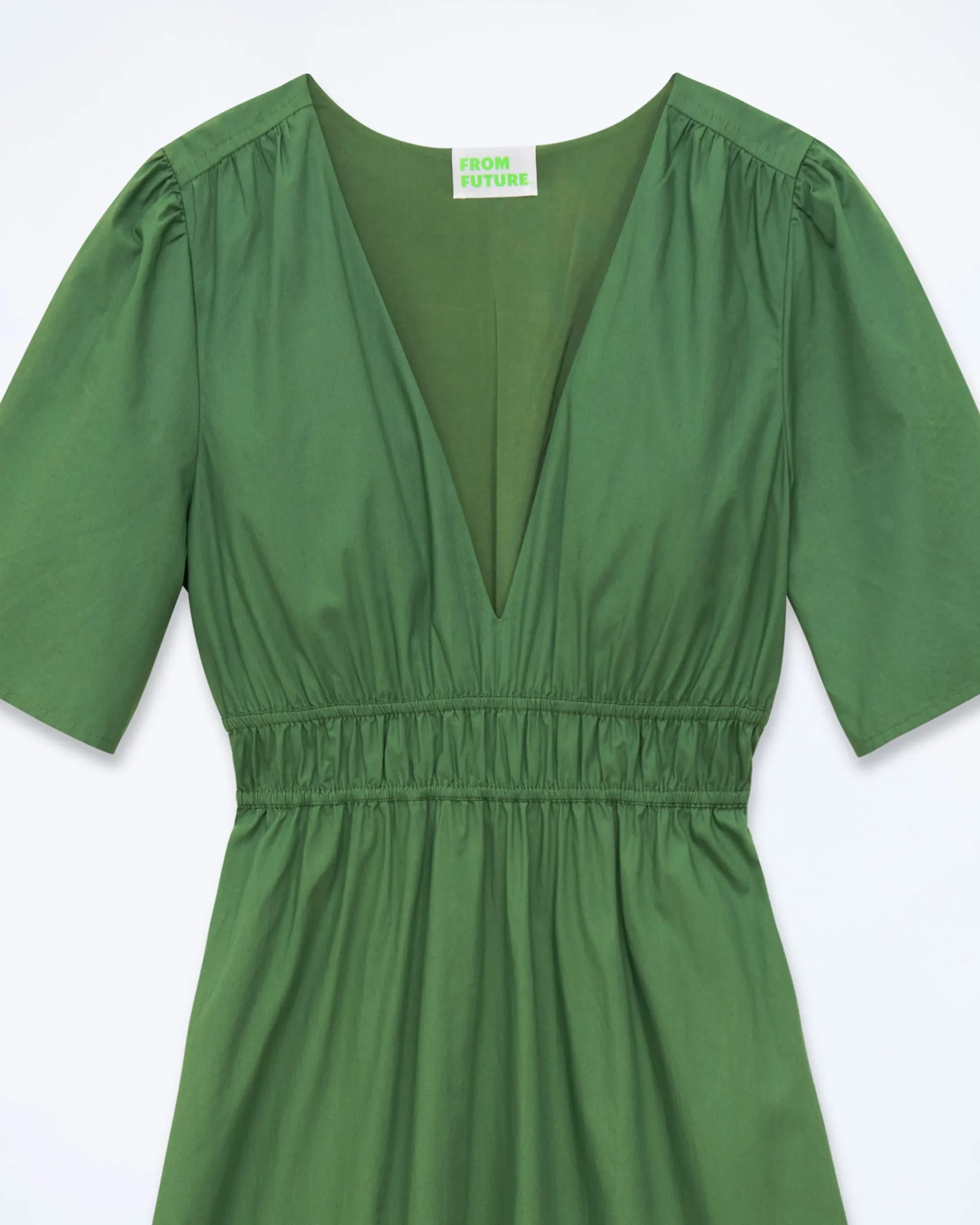 Un taglio slim e arioso per il vestito lungo Gianna in cotone! Con maniche corte e uno scollo profondo, presenta un gioco di increspature sulle spalle e in vita, e una gonna svasata. Completa il tuo look chic con un paio di décolleté o di sandali!