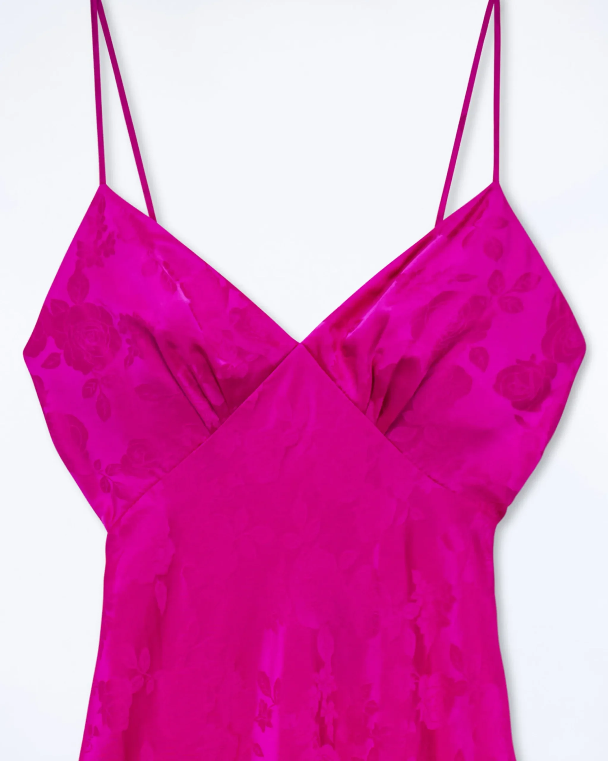 Lungo e satinato, il vestito Gigi dona al tuo stile un tocco di leggerezza. Confezionato in raso di seta impreziosito da una stampa floreale, presenta spalline sottili e uno scollo a V.