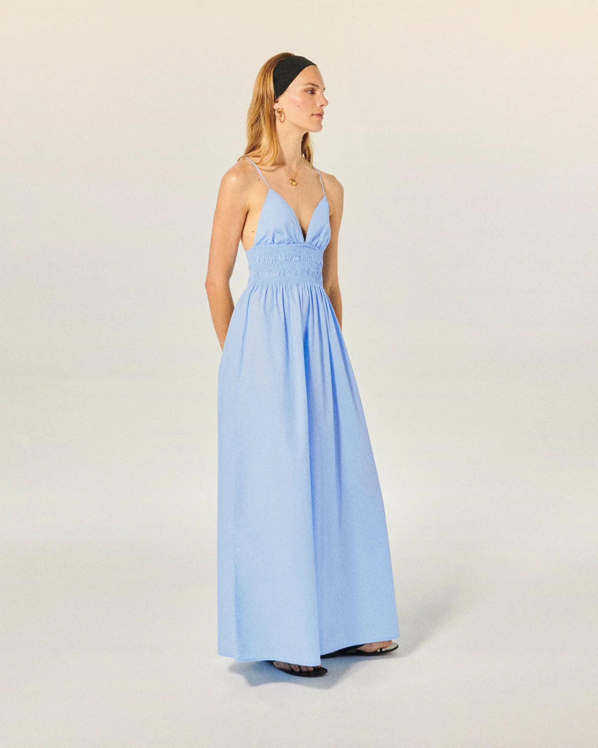 Delicatamente plissettato, il vestito lungo Liah in cotone regala un look morbido e arioso. Con spalline sottili incrociate dietro e uno scollo a V, presenta una vita increspata e una gonna vaporosa.