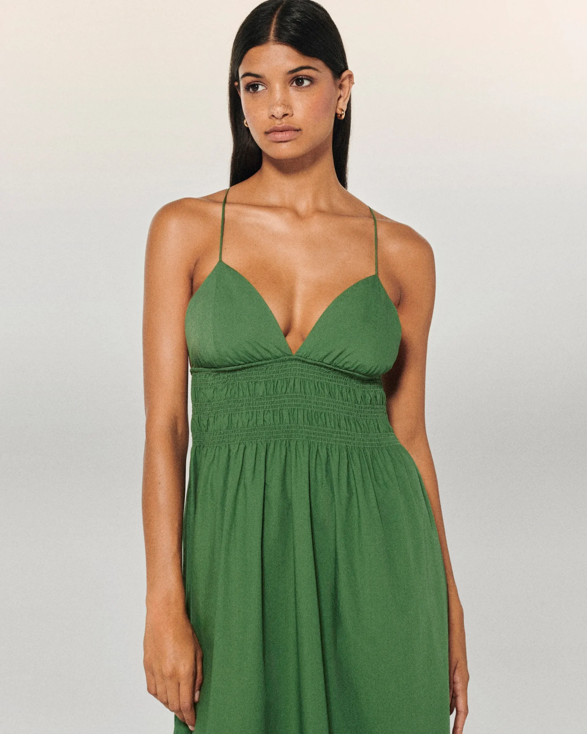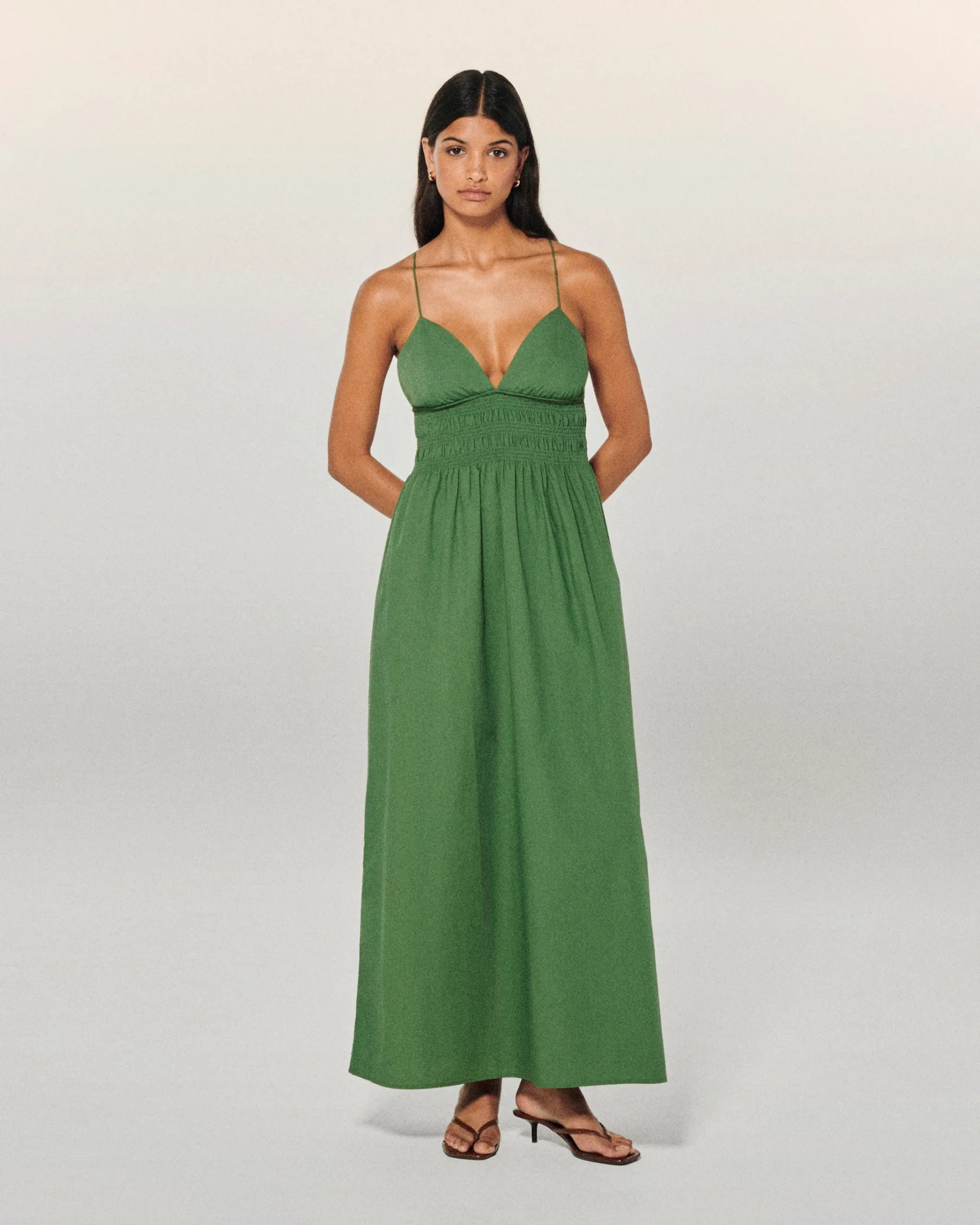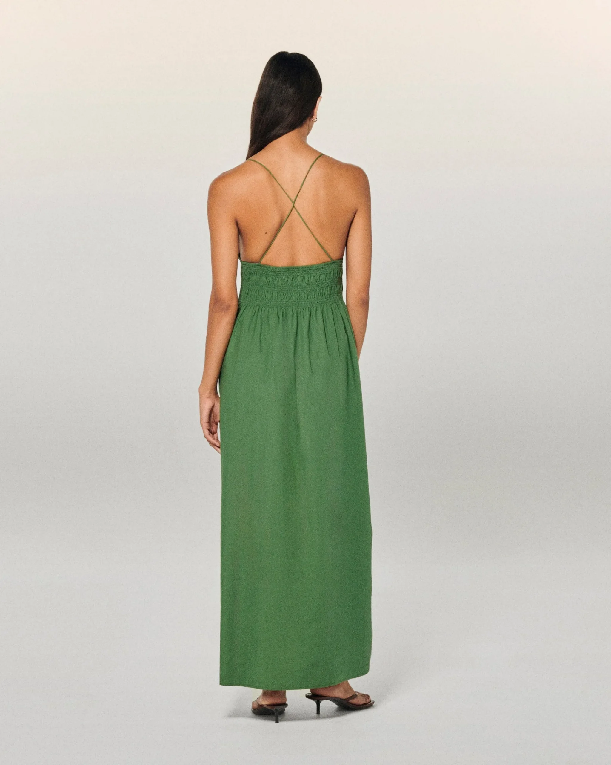 Delicatamente plissettato, il vestito lungo Liah in cotone regala un look morbido e arioso. Con spalline sottili incrociate dietro e uno scollo a V, presenta una vita increspata e una gonna vaporosa.